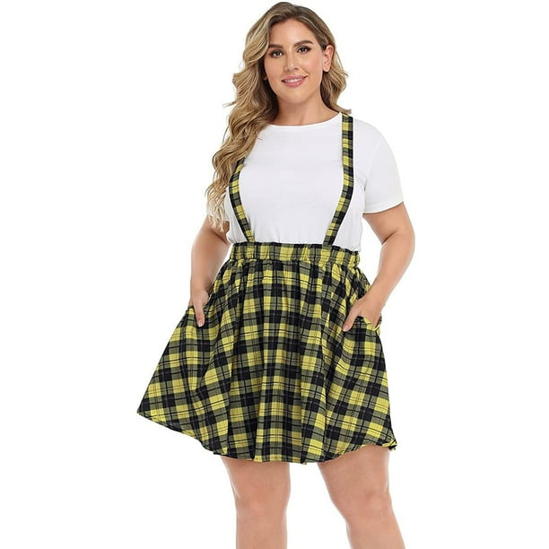 Hde Plus Size Suspender Skirt Cute Skater Skirts Sizes 1 4x Yellow Plaid 1x Walmart Com