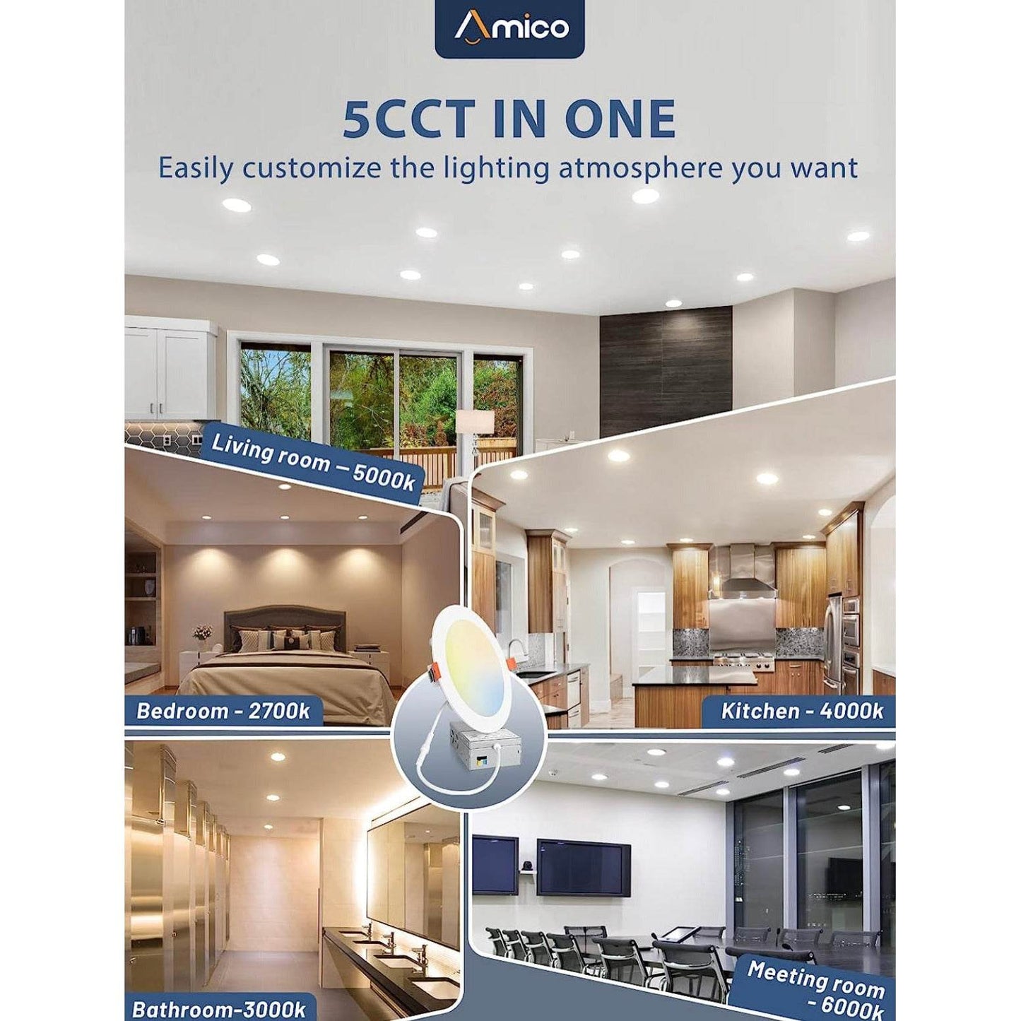 Amico 5 6 Inch 5cct Led Recessed Lighting 12 Pack 1050lm Flat Led Can Lights Dimmable Ic Rated 12w Eqv 110w 2700k 3000k 4000k 5000k 6000k Selectable Retrofit Installation Etl Fcc Amazon Com